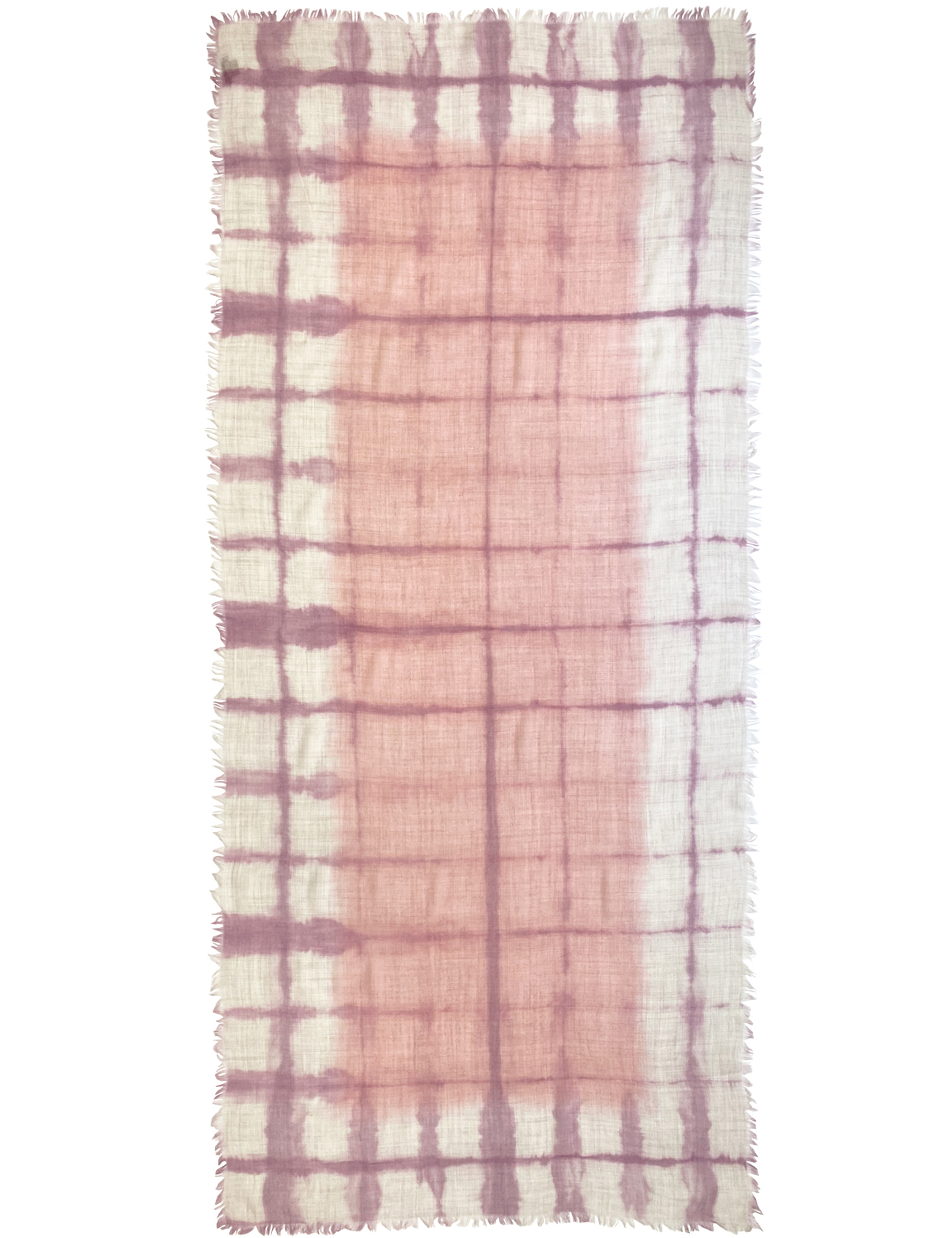 Stole made in pure wool with a contemporary look, characterized by a natural melange base dyed and overdrawn with a tie dye finish. Finished with micro-fringes on all sides.