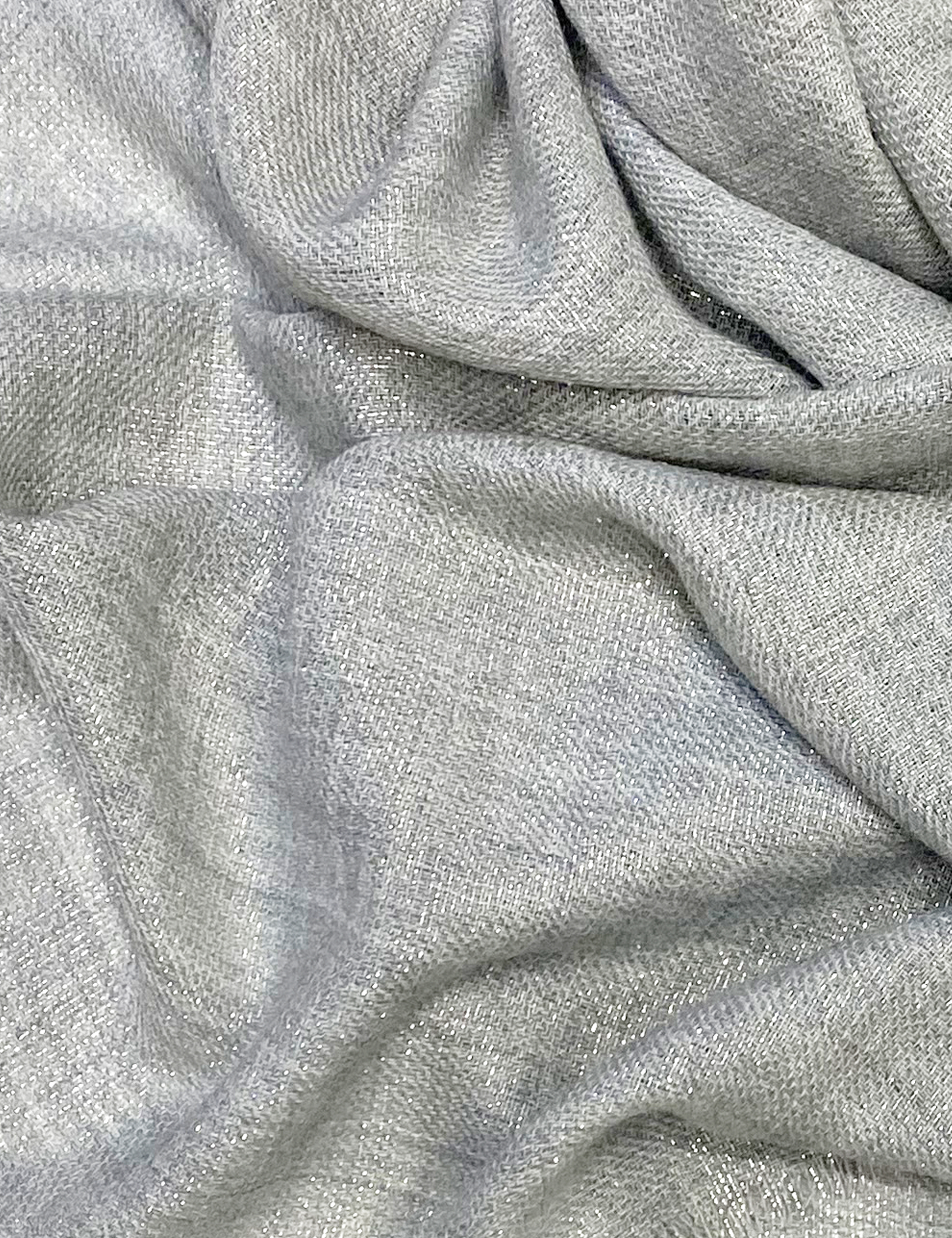 Versatile and soft mix wool stole enriched with metallic thread insertions.