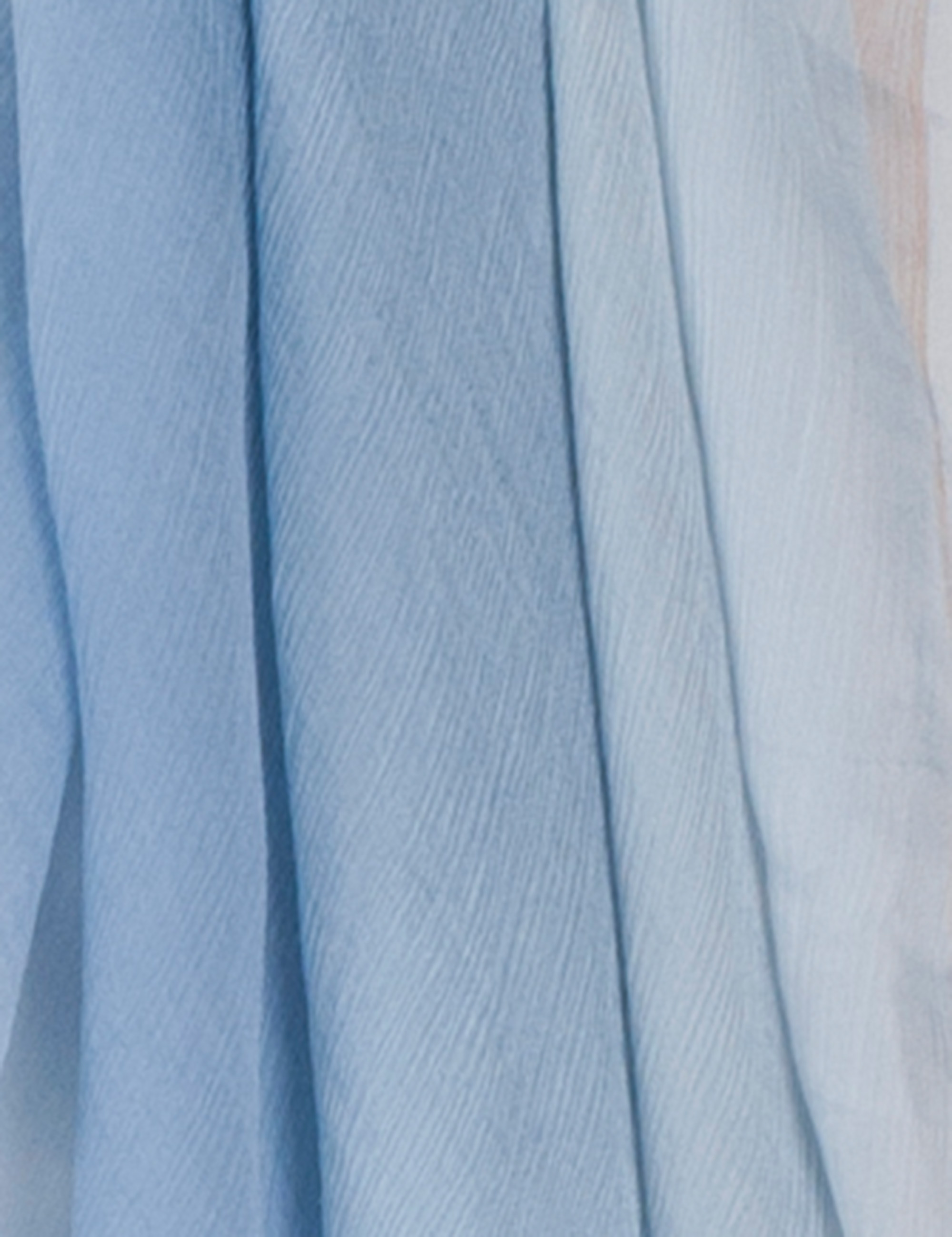 Impalpabile e delicata, questa ampia stola in chiffon di seta avvolge il corpo con la sua leggerezza eterea. La trasparenza del tessuto, quasi impalpabile al tatto, crea un effetto fluttuante e sinuoso, mentre la sfumatura in azzurro ceruleo esalta la sua eleganza sofisticata. Perfetta per aggiungere un tocco raffinato e leggero a qualsiasi look, è l'accessorio ideale per chi ama la grazia e la femminilità senza tempo.