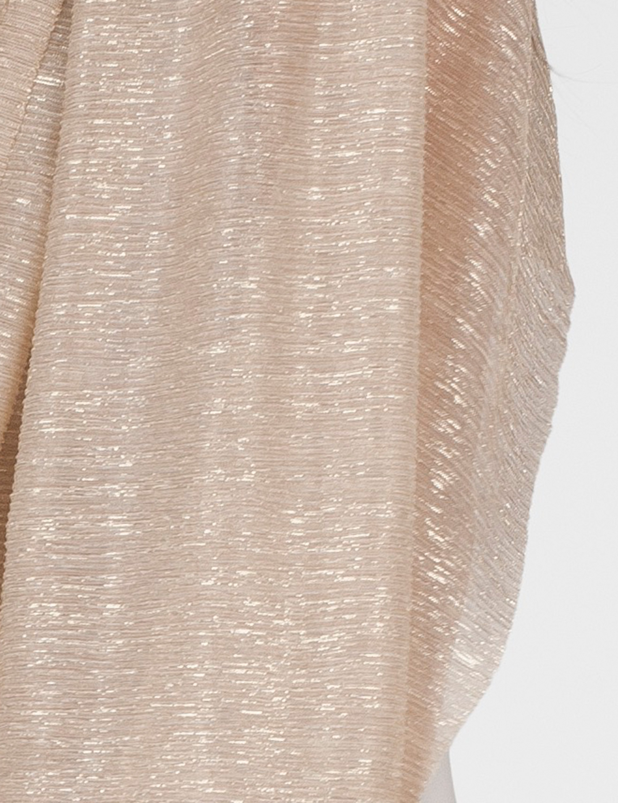 Elegante stola leggera dorata, arricchita da raffinati inserti in lurex che catturano la luce e aggiungono un tocco di brillantezza. Un accessorio sofisticato e versatile, perfetto per completare ogni look con un delicato accento di lusso e raffinatezza. Ideale per serate eleganti o eventi speciali.