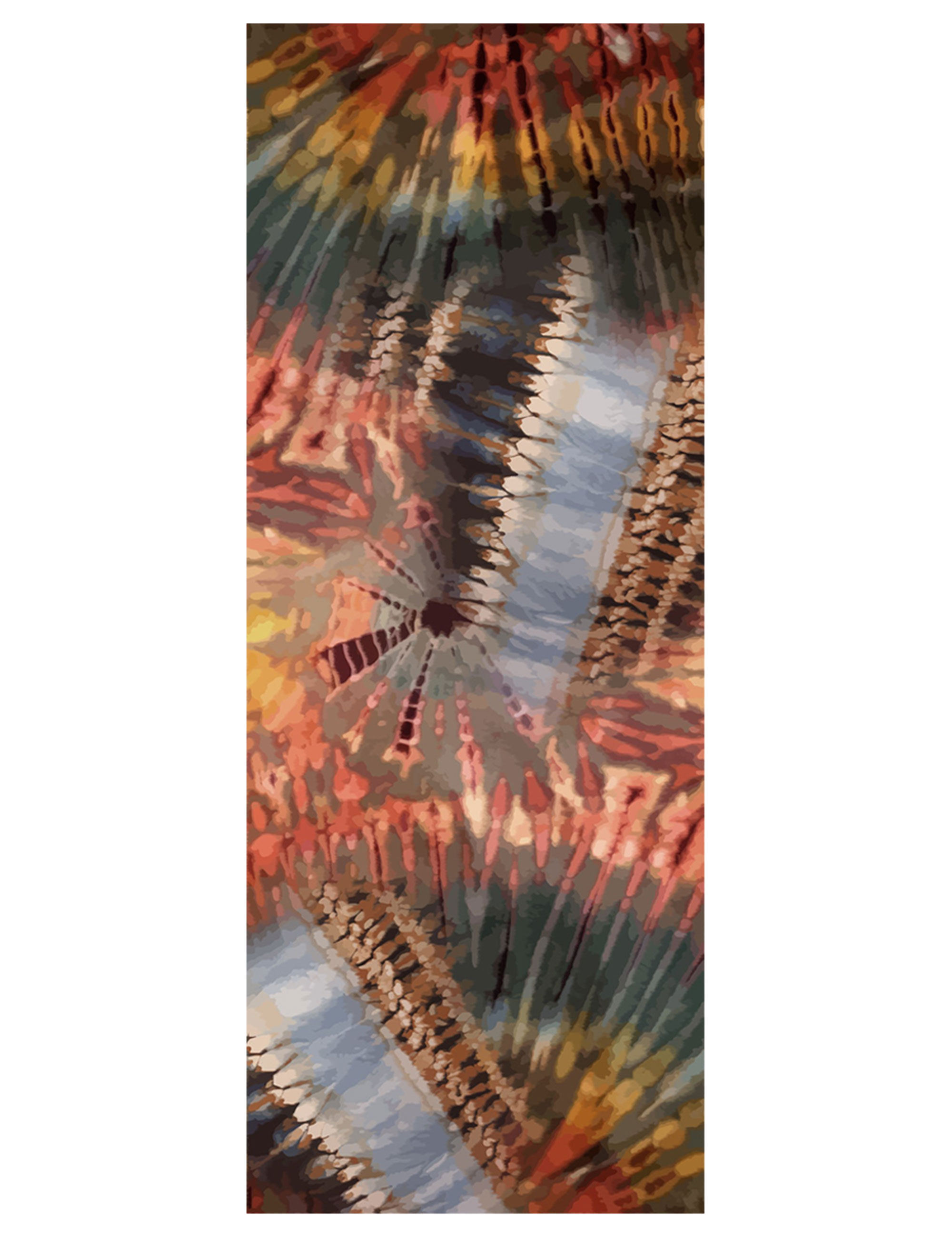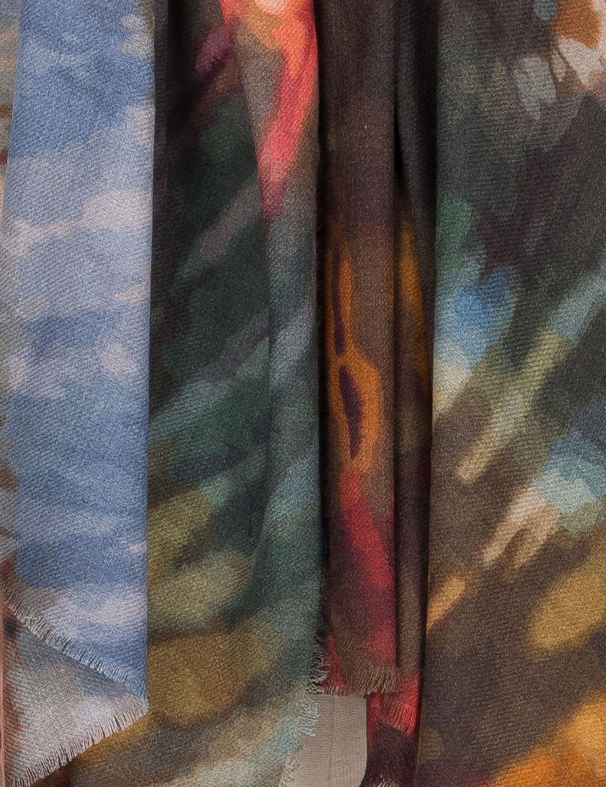 Stampa astratta dai colori intensi su tessuto morbido e avvolgente. Perfetta per aggiungere un tocco artistico a ogni look.