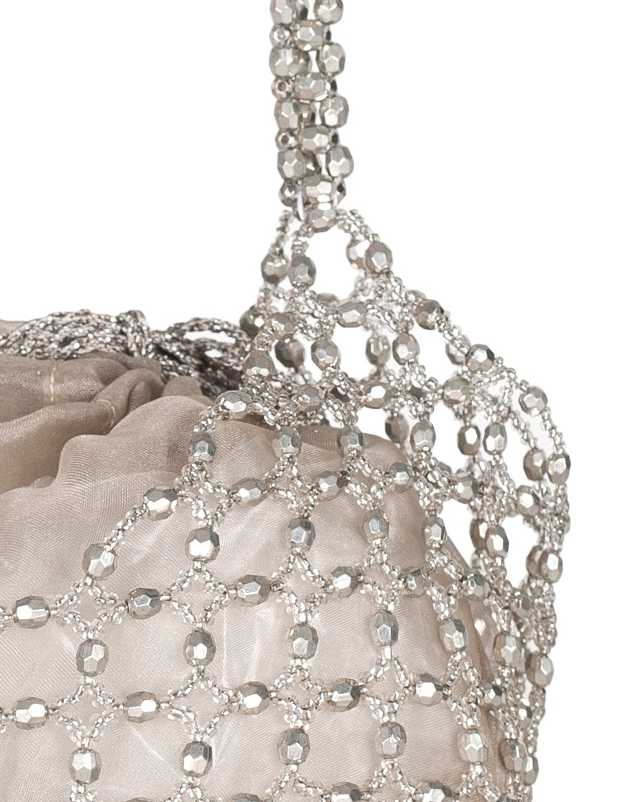 Borsetta a mano realizzata artigianalmente, con lavorazione a rete in perline.