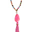 Maxi ciondolo centrale in tonalità fucsia con nappa in coordinato, che dona un tocco vibrante e luminoso al design.